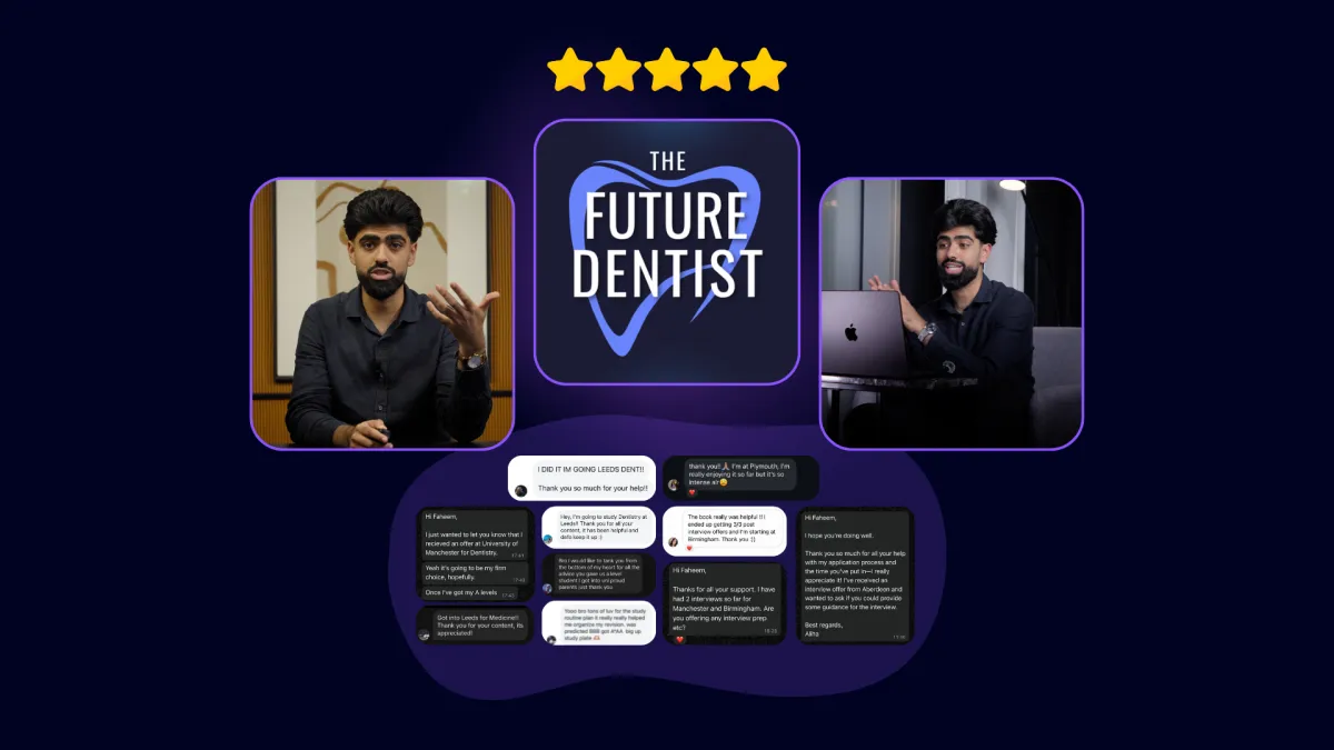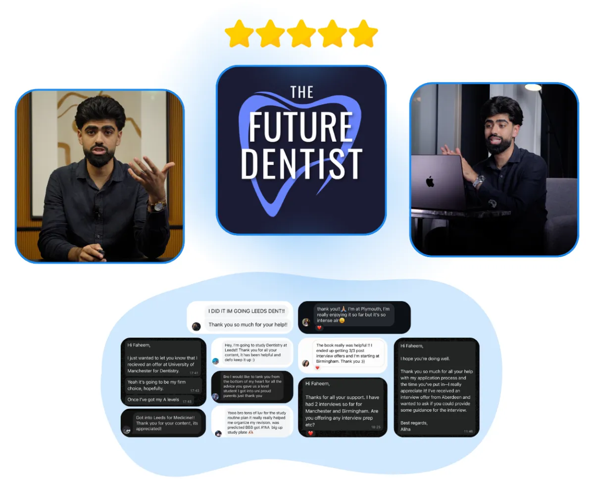 We combine A-Level mastery, UCAT preparation, personal statement development, and interview training - all delivered by top 1% dental students who have a track record of proven success