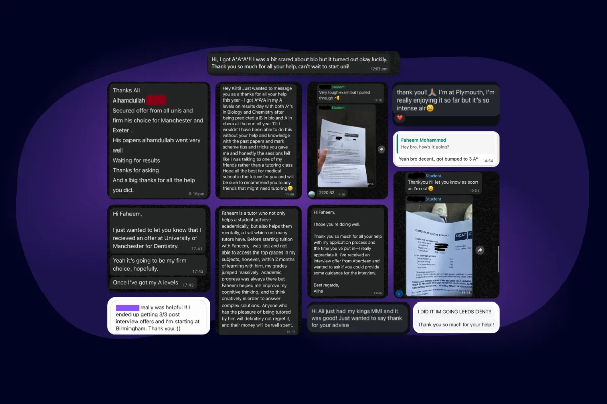 Our mentors don’t just teach; they guide your child through every part of the process, from predicted grades and UCAT strategy to interview performance and mindset.